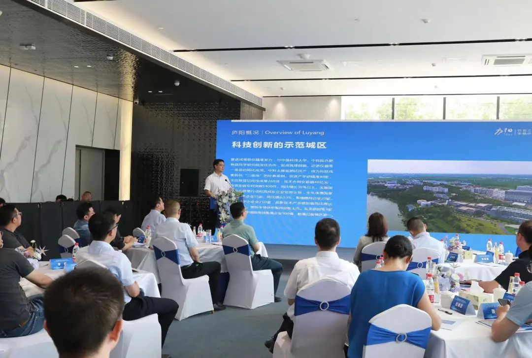 活動(dòng)現(xiàn)場(chǎng),時(shí)坤從區(qū)情介紹、產(chǎn)品載體、未來(lái)發(fā)展方向等方面作廬陽(yáng)區(qū)產(chǎn)業(yè)推介。